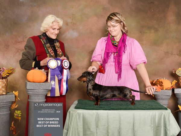 Livvy was Winners Bitch, Best of Winners, and Best Of Breed at the Greater Ontario Dachshund Speciality Oct 2025.